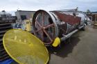 Used FMC Triple Shell Rotary Pressure Cooker-Cooler. Designed for 300x407 cans, 42 step small shaft shells, 2772 can capacity pressure cooker, 798 can capacity pressure cooler, 1260 can capacity atmospheric cooler. Standard-reverse-standard layout, cup feed, standard feed & transfer valves, atmospheric chute discharge with drive. Pressure shells rated 25 psi at 267 degrees F. National Board# 167 & 168, serial# 3642-43-49 & 3642-44-49.