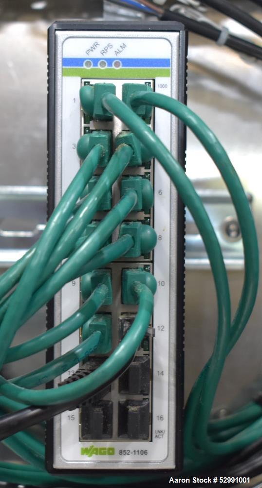 Used Green Vault Systems Precision Batcher, Model GVS101-HB. 304 Stainless Steel. 800-1000 Packages per hour. Packaging accuracy: 0.01 Grams. 0.5 - 10g Batch sizes. Control panel with Wago PLC, Tangent HMI. 100psi @ 5cfm air requirements. 1/60/110 Volt, 10 amp requirements. Mounted on frame with platform and stairs. Serial# 201065.
