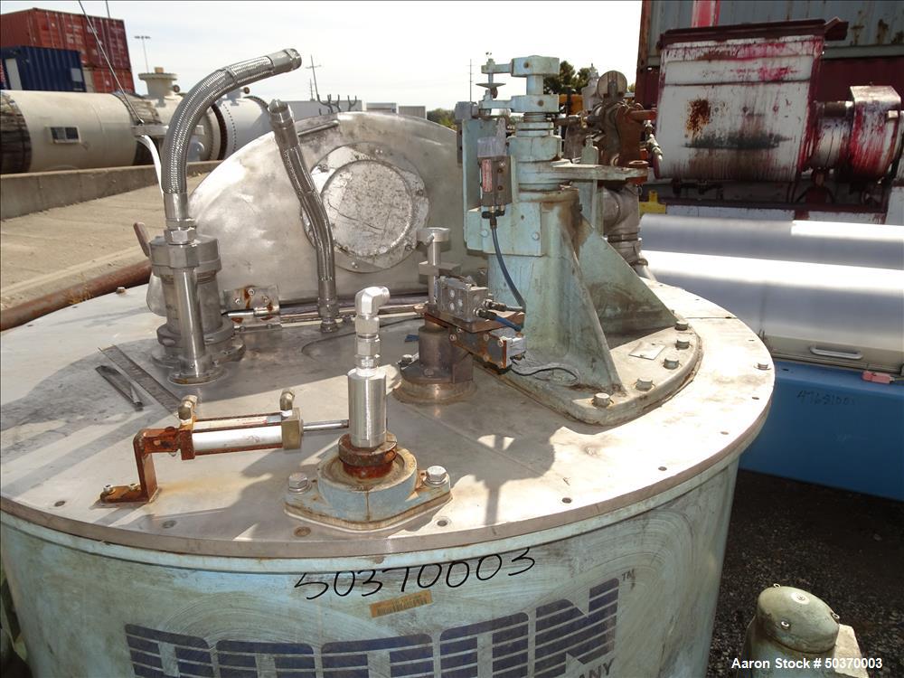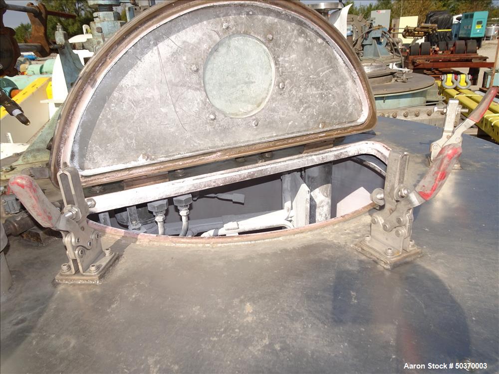 Used Sharples 48" x 30" Perforated Basket Basket Centrifuge. Stainless steel (product contact areas), top load, bottom dump, single motion full length plow assembly with "Air-knife", tri-pod suspension, base, curb housing, top cover with hinged inspection door with window, feed pipe, rinse pipe, cake detector, 75 hp drive motor (460/3/60).