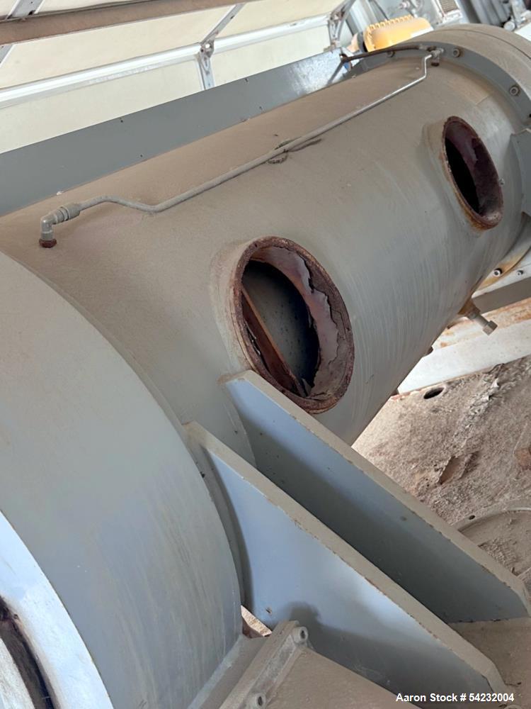 Used- US Filter - Hiller JS1500ED Solid Bowl Decanter Centrifuge. Stainless steel product contact parts. 4200 RPM max. bowl speed; 4000 RPM max. operating speed; 122 degrees F max. operating temperature; 81 cu. ft. permissible density; 14.57" (370mm) inside bowl diameter; 64.33" (1634mm) bowl length; .39" bowl thickness; OAD: Approximately 111" L x 54" W x 43" H. Driven by a 25 HP, 3/60/408V, 3530 RPM motor. Built 2004. Previously used for wastewater treatment. (Reported recondition by US Filter).