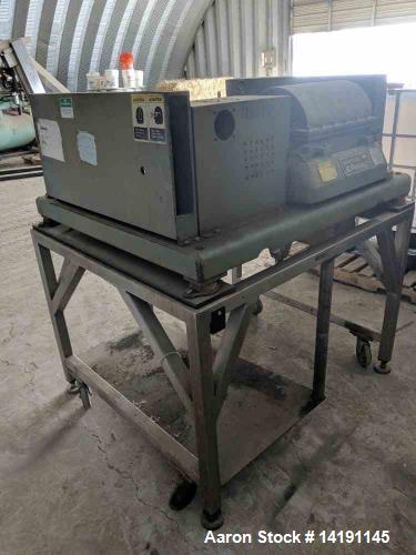 Used- Westfalia Solid Bowl Decanter Centrifuge, Model AD-0509. 316 stainless steel construction (product contact areas). Bowl diameter 300 mm, maximum bowl speed 4500 rpm, 4" single lead with welded hard face, lined cake solids discharge ports with cake flingers, ring liquid dam plates, base, casing gearbox, feed pipe with poly addition port, approximately 15hp main drive motor, 2.2 kw (2.9hp), 220/380/3/50 back drive. Our freight specialists can assist you with door to door transportation and all customs documents needed to make the process go as smoothly as possible.