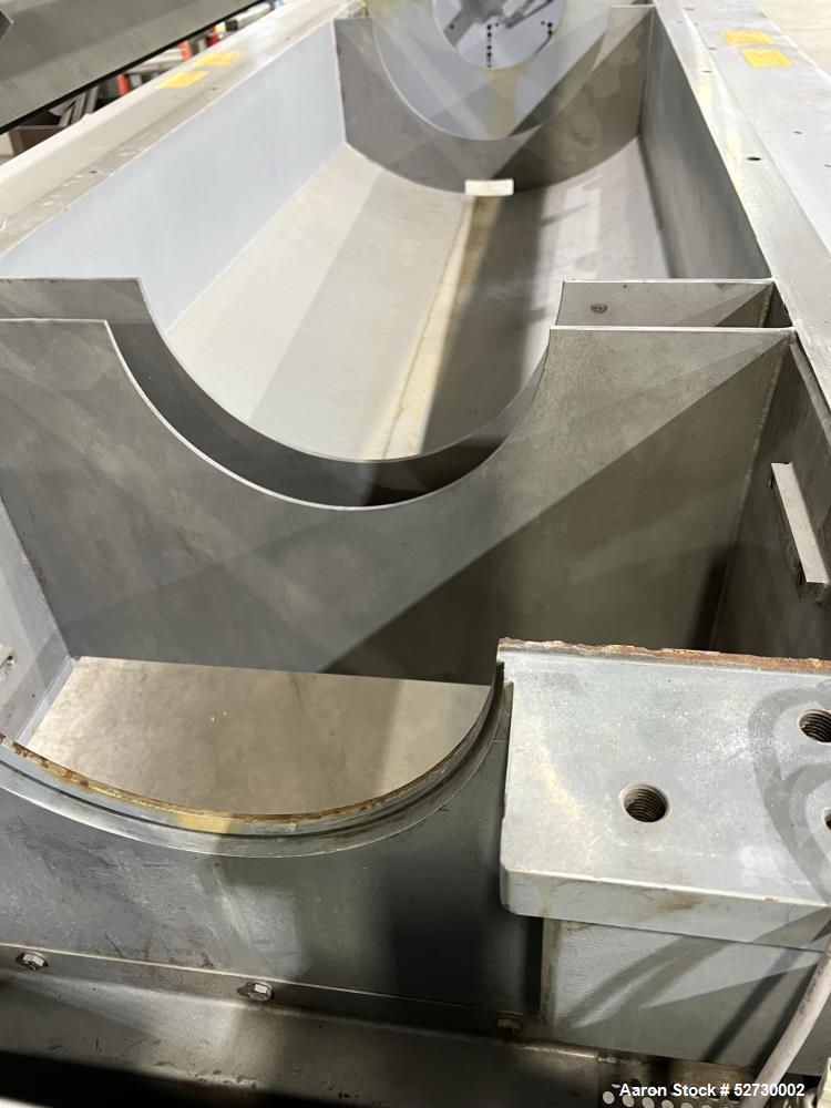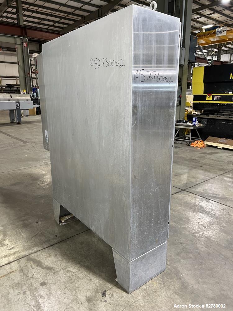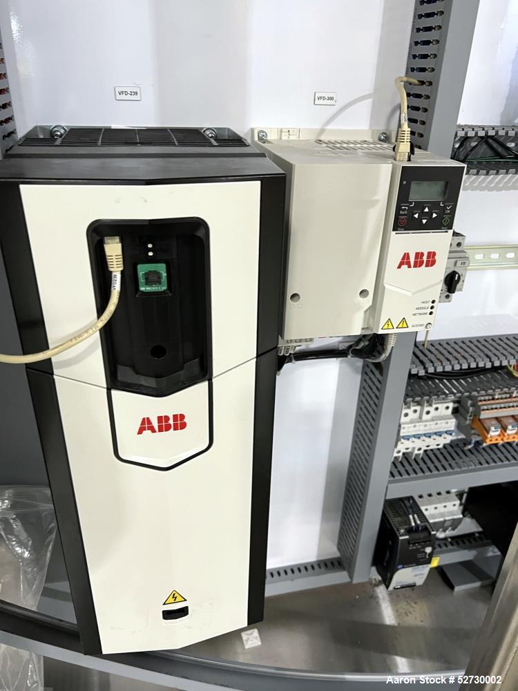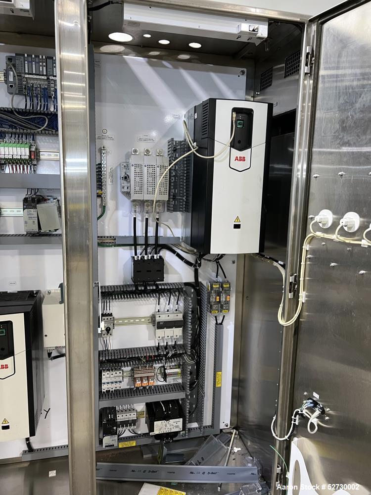 Used Alfa Laval Aldec G2 105 Solid Bowl Decanter Centrifuge, 316 Stainless Steel. Maximum solids density 1.2 kg/dm3. Maximum bowl speed 3400 rpm. Feed temperature 32 to 140 degrees F. Approximately 22" diameter x 60" straight side bowl. 75hp 3/60/460v 1780rpm main drive motor. 40hp 3/50/400v 1484rpm back drive motor. Includes approximately 21" diameter x 86" long screw with 7-9/16" pitch. Control panel with Allen Bradley panelview plus HMI, A/B compactlogix 5380 PLC, (3) ABB vfd's. Serial# 5026350, built 2017.
