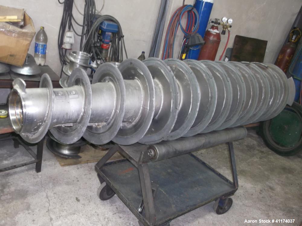 Used Alfa Laval Solid Bowl Decanter Centrifuge, Model CBDNX-438B-31G, 316 stainless steel construction (product contact areas). Maximum bowl speed 3650 rpm. Operating G force 3193. Conveyor, 360 degree solids discharge ports with wear inserts, base, casing, 55 kW (73.7hp) main drive motor, feed pipe, safety guards, gearbox. On 4 legs. Includes: 2 x control panels. Bowl diameter 480/263 mm. Back drive: Variable frequency drive, 11 kW (14.7hp) motor. Previous used on fish and protein. Mounted on a frame with 4 legs.