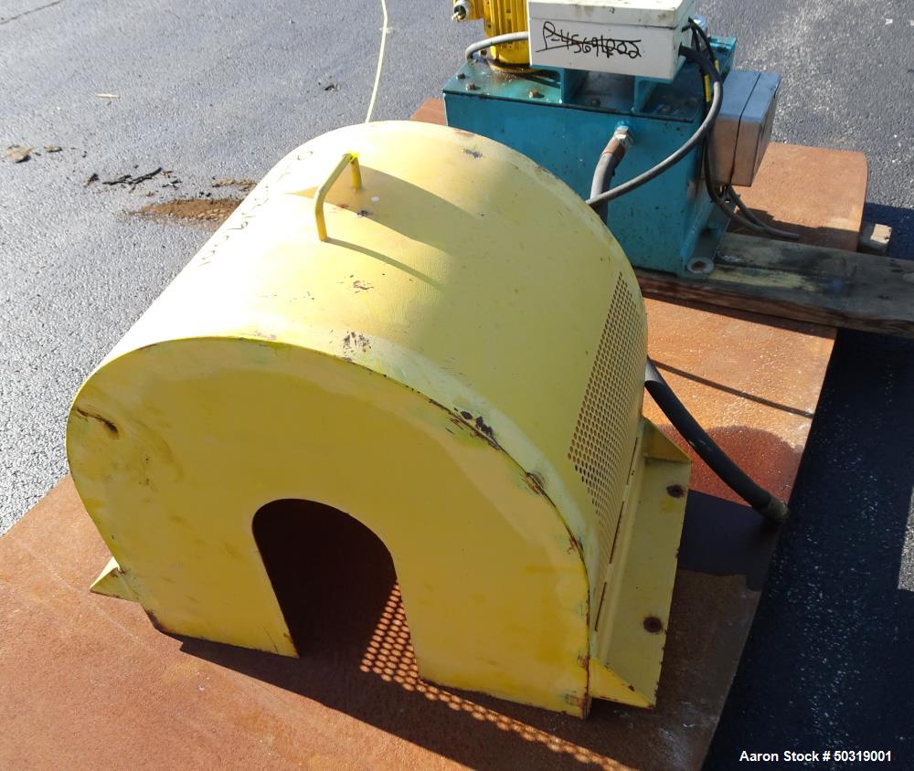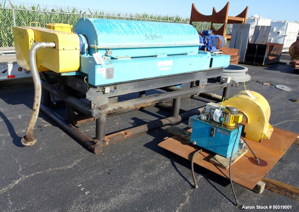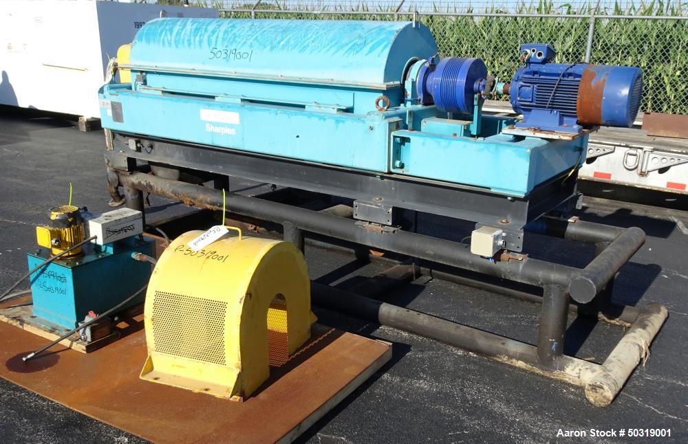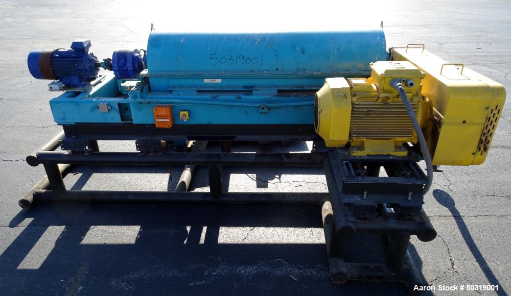 Used Alfa Laval / Sharples DSNX 4250 (PM36000) Super-D-Canter Centrifuge (dry solids design). 316 Stainless Steel construction (product contact areas). Maximum bowl speed 3150 rpm. 5.5" single lead conveyor with 360 degree solids discharge ports and sintered tungsten carbide wear inserts, moon liquid plate dams, bowl, 2.15 Kn ratio gearbox, base, casing, lubrication system. Includes 37 kw (49.6hp), 690/3/50/1480 rpm main drive, 15 kw (20hp), 380/3/50/2930 rpm back drive, feed pipe, vibration isolators, vibration switch, safety guards.