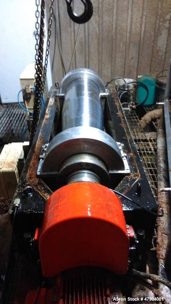 Used Centriquip CQ-3000 Solid Bowl Decanter Centrifuge. Max speed 4500 rpm, 3 x 415 V 50 HZ motor 18.5 Kw control panel. Mfg 2011. Unit is refurbished. Refurbishment includes:. Dismantle the Centrifuge Completely. Dismantle the R.A. and Hydraulic Rotodiff, clean, inspect and compile service/workshop inspection Report.. Check balance scroll assembley and correct. Check balance bowl assembley and correct. Reassemble the R. A including the Hydraulic Rotodiff. Reassemble the complete R,A back into the base frame.. Reassemble all covers and guards.. Test run the Centrifuge for approximately 6 hrs. Check all instrumentation for correct operation.. Check for leaks.. Check and record bearing temperatures and vibration levels.. Prepare the Centrifuge for dispatch.. Major Service inclusive of all Bearings, Radial Seals, O Rings, Fasteners,. Shot blast Scroll to facilitate repairs. Repair the lead journal on the scroll which is heavily worn. Repair, refurbish and repaint the base frame. inspect and service the centrifuge drive motor and assemble with new bearings/seals and test to confirm correct operation. Replacement of all damaged and cracked ceramic port brushes. Replacement of the Acoustic Cover and Belt Drive Guard