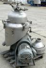 Used Alfa-Laval BRPX-207-19S-60 Desludger Centrifuge, 304 Stainless Steel. Purifier design, maximum bowl speed 6200 rpm, rated at 10 gpm. 7.5 hp motor, 440/3/60/1760 rpm.