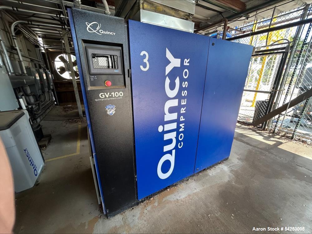 Used- Quincy Rotary Screw Air Compressor, Model QSI-500. Rated 500 CFM; 100HP. Reported to have 30,757 hours. Serial# 99427H.
