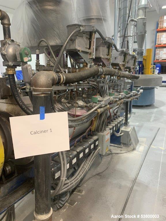Used Bartlett-Snow 6.5" Diameter x 132" Long Indirect Rotary Calciner. Inconel tubes, rated 1150 C operating temp, 86" center tube length, 135" overall tube length. Gas fired; 14 burners, 4 zones; new Independent burner/gas control for each zone; Each burner has flame detection installed; Allanson ignition transformers; North American combustion valves. Insulated exhaust sections available. Requires controls which can be provided at additional cost. NOTE: Some photos are from when the unit was installed in 2022 and others are current from storage.