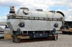 Used Carrier Stainless Fluid-Flow Vibrating Fluid Bed Dryer Cooler; Model QAD-6060S. 46" wide x 22' long inside dimensions. The total length of the bed before the material comes out is 22'-9" long. The holes are approximately 3/32" diameter on 1/2" spacing. The bed depth up to the cover mounting top is 9.5". Total drying area is 84.3 square feet. Needs to ship with the cover off. (Previously used a 22,100 cfm at 14" sp New York blower 33 plr fan, not included). Overall height with cover equals 12'-9".