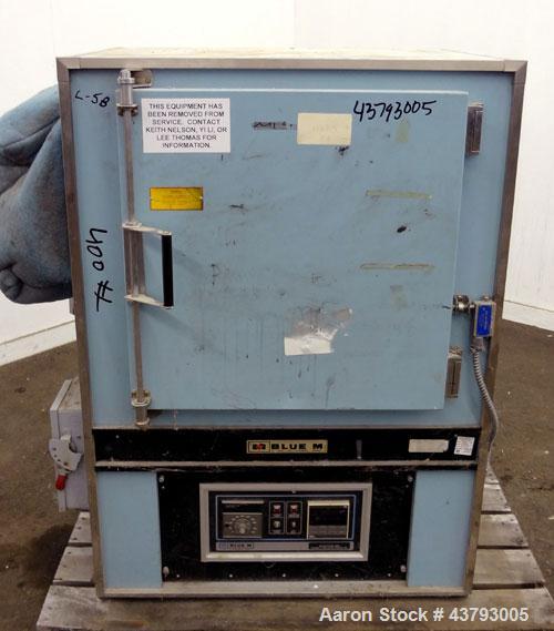 Used Blue M Mechanical Convection Oven, Model DC-206C. 304 Stainless steel chamber 20" wide x 20" high x 18" deep, 4.2 cubic feet interior volume. Temperature range 343 degrees C. / 650 degrees F. Hinged front door. 1/60/208-240 volt. Includes a control panel.