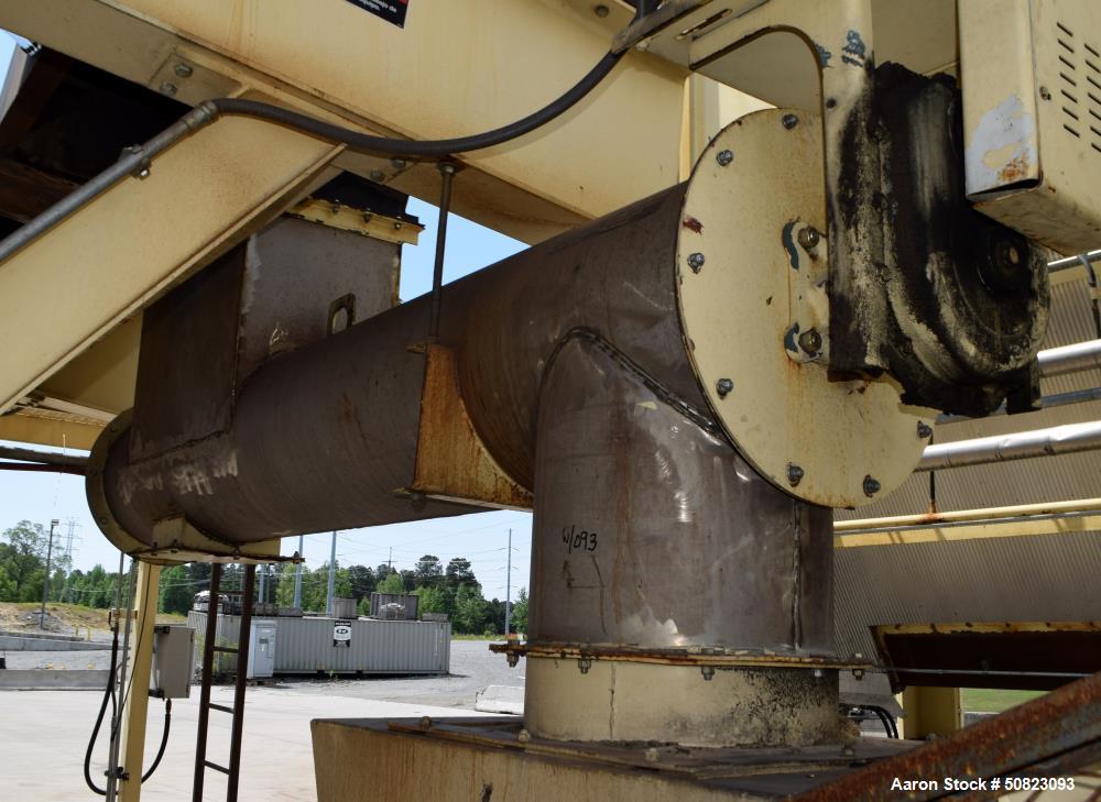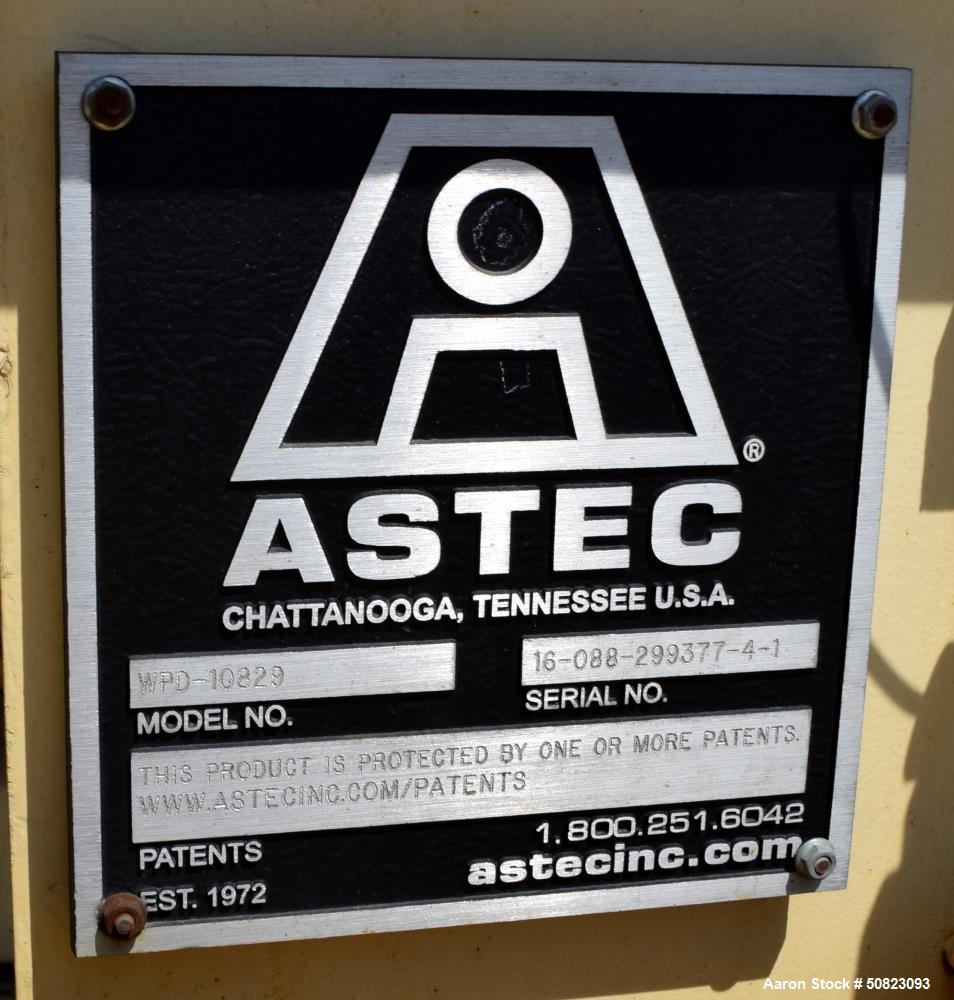 Used Astec Rotary Tube Type Indirect Dryer, Model WPD-10829, Carbon Steel. Last used with wood chips removed 5% - 6% moisture from feed material. End feed with hopper and screw feeder, end discharge with hood and a stainless steel auger discharge. Dryer driven by a chain & sprocket with a 60 HP motor with a reducer, ratio 43.78 to 1. Includes a control panel with a Siemens Milltronics BW500/L controller. Serial# 16-088-299377-4-1.