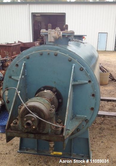 Used Stokes Rotary Vacuum Dryer. 3' Diameter x 10' long. Approximately 70 cubic foot total capacity with 55 cubic foot working capacity. Stainless steel contacts. Internal rated full vacuum @ 348 deg F. Jacket rated 115 psi @ 348 deg F. Comes with legs. Drive is 7.5 hp, 1725, 230/460 volt motor into 25: gear reducer. 12" Bottom outlet with butterfly valve.