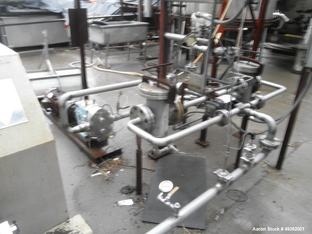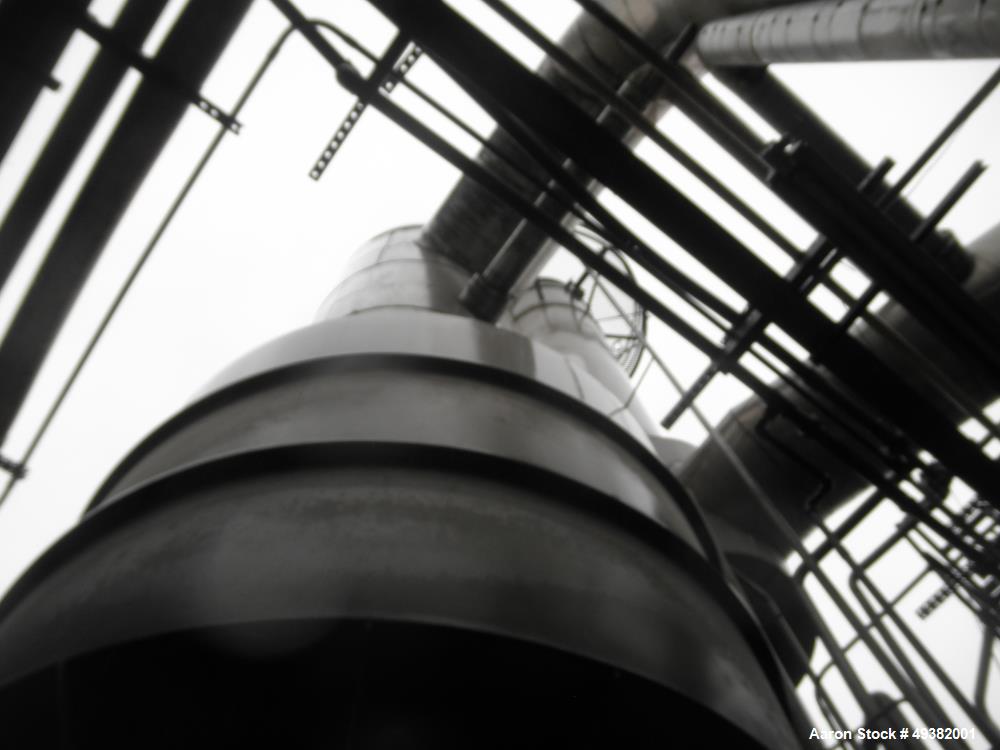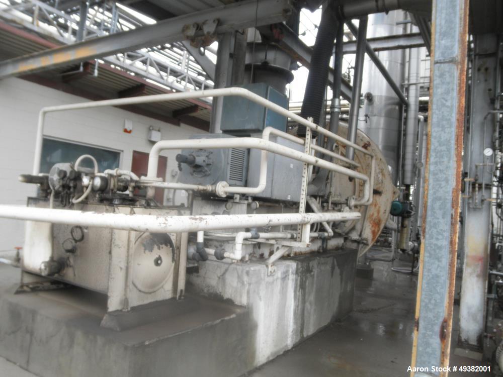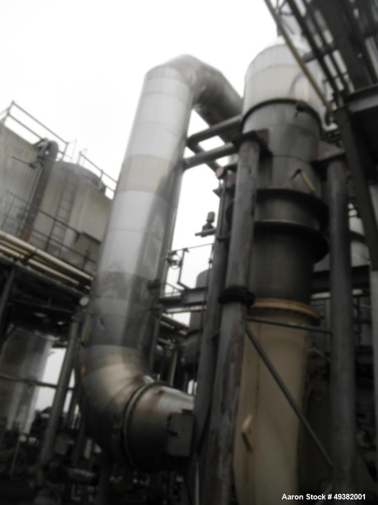 Used Niro Spray and Fluid Bed Drying System: Rated 24 MMBTU. Double effect evaporator, last used on animal blood, poultry hydrolysis, egg, liver products, pork plasma. Includes (2) towers with titanium tube sheets, titanium heads, stainless steel shell. Rated for approximately 50,000 pounds/hour water, 30,000 pounds/hour product. System includes horizontal condenser, shell and tube heat exchanger, stainless steel tubes, carbon steel shell. Circulation pumps are in storage, Goulds stainless steel with CD4 impellers. Missing control system. Arthur Zimmer Spray drying system, approximately 30' diameter, manufactured by Niro, stainless steel contacts, fed by Niro Savoi 125 hp high pressure feed pump, rated for 1800 - 2500 PSI feed. Top of dryer includes (8) feed nozzles (typically fed four nozzles at a time). Also includes Waukesha 130 stainless steel pump, Milpointe 50,000 CFM vertical scrubber, (4) stainless steel cyclones, etc. With Wiegand single effect evaporator, rated for approximately 45,000 - 50,000 pounds/hour product, 35,000 pounds/hour water evaporation rate, 304 stainless steel construction, with dedicated boiler, Needs vacuum pump. Includes 400 hp DC drive, vari-speed, SIHI vacuum pumps, Goulds centrifugal pumps. Last used on blood products, eggs, brewers yeast, liver products, poultry products, etc. With Rotary screen, 5' diameter x 12' long, manufacture by Baycore Fibre, Type SDS 60120, Serial# 99-0210. Current replacement cost is $200,000. Includes approximately 6" diameter flange feed inlet, leading to internal distributor. Equipment has fine mesh internal screen. Spare screens. Last screening eggs. With AirChem scrubber, rated for approximately 50,000 CFM, single stage with packed bed, No controls, last used as scrubber for hydrolysis building. New in 1998, 840 GPM, 1.5" W.C., ambient. With G&H Products Tube-in-tube heat exchanger, stainless steel construction, approximately 3" diameter outer tube, 2" diameter inner tube, 25' long, (20) tubes in 2x10 sections, insulated. Brought product from 180? to 40?. Used on Dairy / Milk Products. Food Grade.