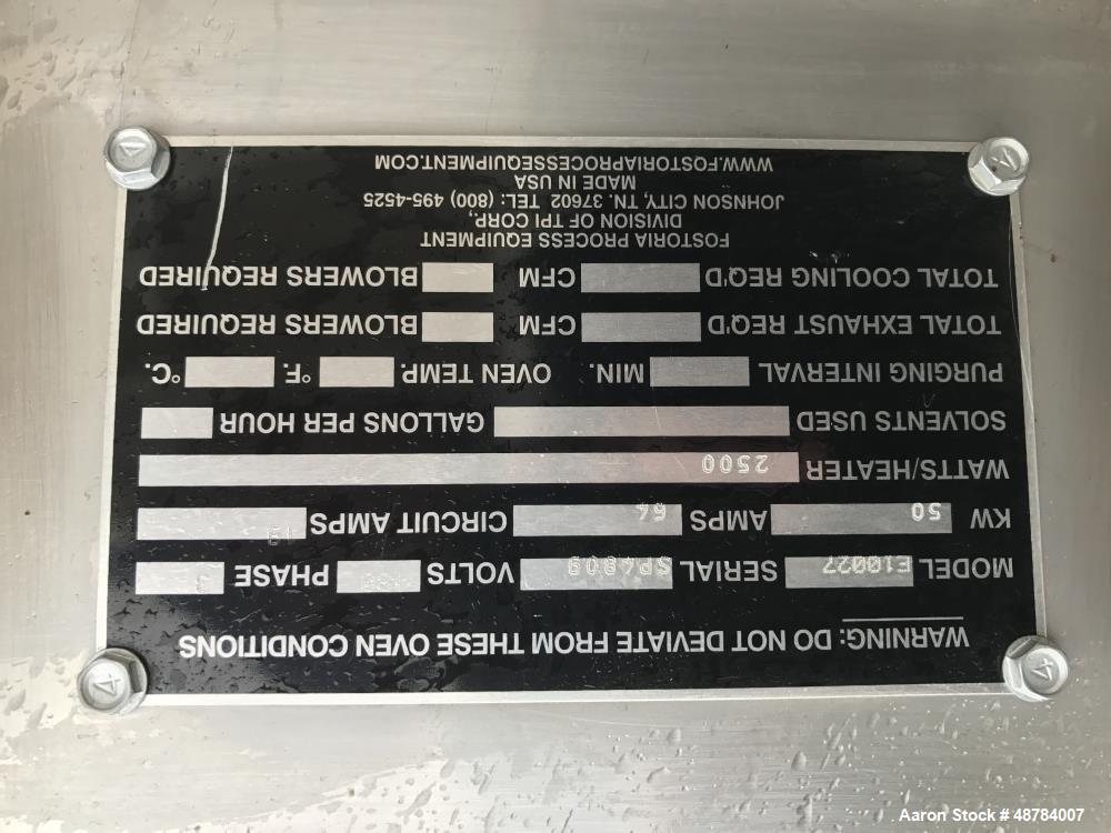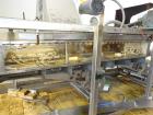 Used FMC Syntron Electromagnetic Vibratory Feeder, Model FH-22-C-DT. Aluminum pan approximate 22" wide x 80" long x 2" deep, end slotted angle discharge. Driven by (2) vibratory motors, serial# T103202. Includes a Fostoria Process Equipment electric infrared heater with a 0.33hp blower, (1) Top mounted pellet roll feeder, approximate 8" diameter x 19" wide grooved roll, driven by a 0.5hp, 3/60/230/460 volt, 1725 rpm gear motor, ratio 28 to 1. Mounted on a stainless steel frame.