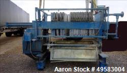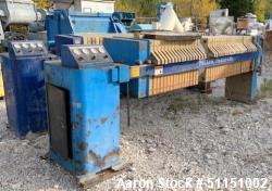 Used Avery Filter Press.(10) 300 mm (12") polypropylene filter plates, approximately 1-1/4" cake.Approximately 9.7 square feet filter area, .39 cubic feet cake capacity.Max temperature rating 100 psi, max temperature 90 deg C.Manually operated hydraulic closing device operated by a hydraulic pump.Mounted on a reconditioned skeleton painted with corrosion resistant epoxy paint.
