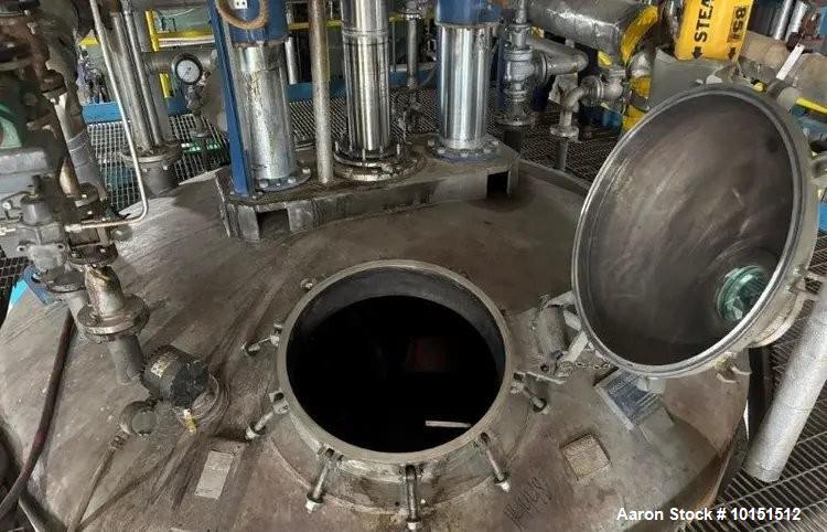 Used Rosenmund 8 Square Meter Nutsche Filter, 304 Stainless Steel. Liquid discharge. 304 stainless steel shell, jacket, and internal. Shell rated 50 psi/FV at 370 degrees F. Half pipe and bottom plate jacket rated 150 psi/FV at 370 degrees F. Base rated 150 psi/FV at 370 degrees F. 20 hp main drive; hydraulic pack. Built 1991.