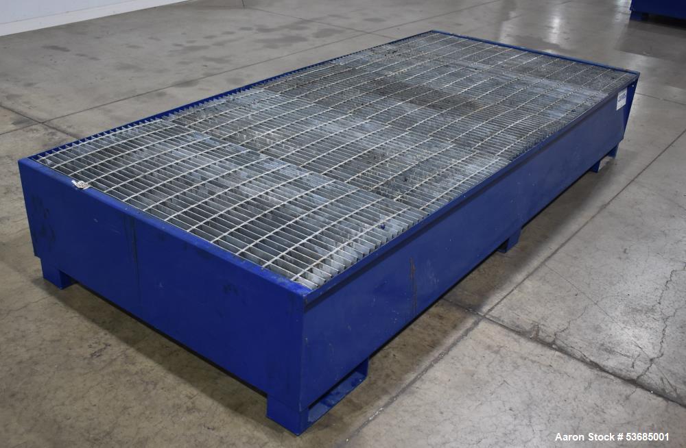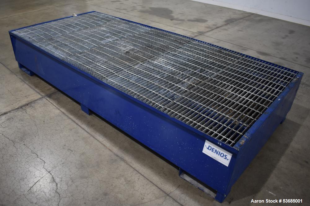 Used Denios IBC Tote Bin Spill Containment Pallet System. Capacity (2) 500-Gallon IBC totes. Approximate 500 gallon sump capacity. Approximate External dimensions 120" x 53" x 26". Approximate internal dimensions 116-3/4" x 49" x 16" deep. Steel Grate platform. Approximate 15,000 lbs. Total load capacity. Feet for easy forklift access.