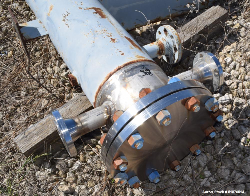 Used J.F.D Tube & Coil 8 Pass Shell & Tube Heat Exchanger, 151.6 Square Feet, Type NEN, Size 10-168, Horizontal. Carbon steel sheel rated 200 psi at -20 to 400 degrees F. (56) 3/4" Diameter x 14' long 316L stainless steel tubes rated 150 psi at -20 to 450 degrees F. 316L Stainless steel tubesheet and heads. Openings shell (2) 2", tubes (2) 2". Mounted on saddles. Serial# 15101, National Board# 2090, built 2015. Last used In Bio-Diesel.
