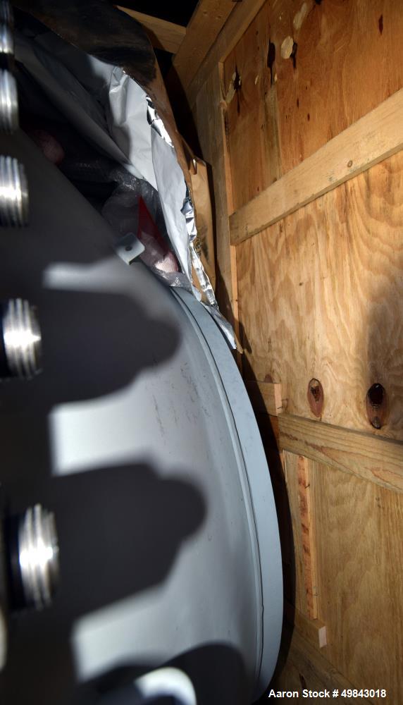Unused- Tranter GmbH Horizontal Spiral Heat Exchanger, Total Surface Area 239.7 Square Meter (2580 Square Feet), Carbon Steel. Shell & coil each rated Full Vacuum/24.5 bar (355 psi) at -45 to 200 degrees C. (-49 to 392 F.). Volume shell 2.080 cubic meters (549 gallon), volume coil 1.800 cubic meters (475 gallon). Openings hot side (2) 6", (2) 2", cold side (2) 6", (2) 2". Mounted on (2) saddles. Unit is nitrogen purged. National Board# 216, serial# S-2858/1.16, CRN# W5665.2, built 2014.