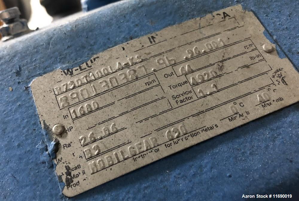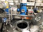 Used Greerco/Gifford Wood Triple Motion "Agi-Mix" Kettle/Reactor, 1,000 Liter (250 Gallon), 316 Stainless Steel, Jacketed, (J.C. Pardo and Sons vessel). Vessel dimensions approximate 48" inside diameter x 54" deep, vessel is jacketed for 100 psi at 338 degree F. Internally rated 20 psi at 250 degree F, unit has high speed homogenizing head top driven by 25 hp 3/60/460V motor. Double motion scrape surface agitation separately driven by 5 hp 3/60/220-440V motor. Equipped with "tilt-out" agitation through self-contained hydraulic motor and cylinder. On stainless legs. Vessel has center-bottom outlet with valve as well as Allen Bradley panel and stainless steel starter panel. Dished top head has quick opening bolts and 12" diameter manway with hinged lid and sight glass.