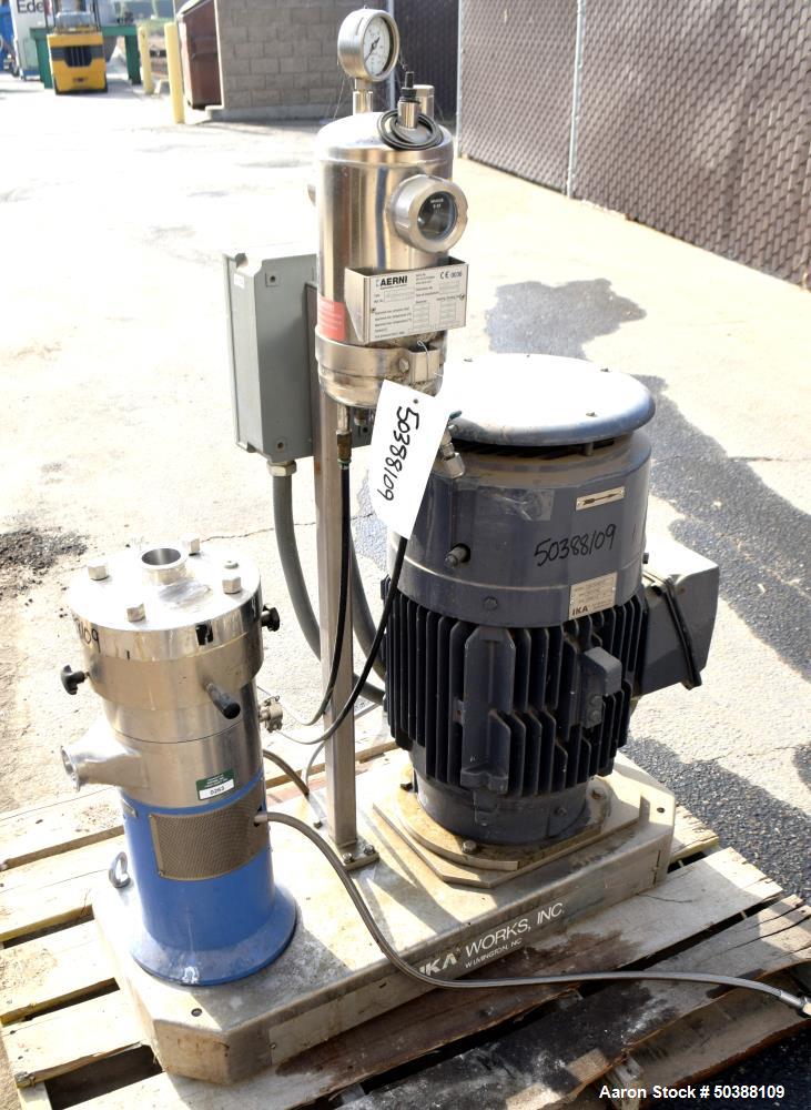 Used IKA Works Dispax Reactor High Shear Inline Disperser, Model DR 2000/10, Stainless Steel. Nominal flow rate 35 gallons per minute, nominal tip speed 4500 feet per minute. Driven by a 30hp, 3/60/230/460 volt, 3525 rpm motor. 2" Inlet & outlet. Unit mounted on a base. Part# P015742, serial# 2598-12.