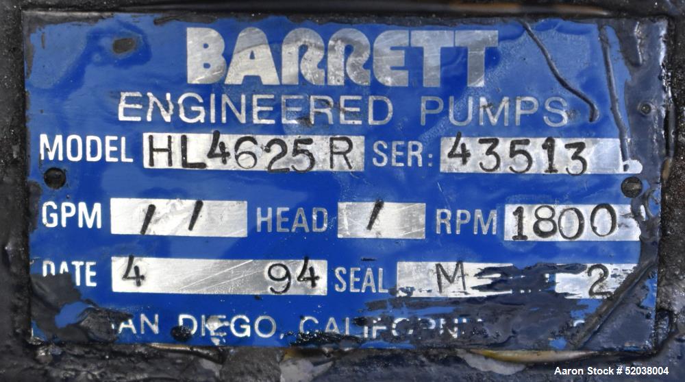 Used Union Process Szegvari Intermittent Type Attritor, Size 30S, Type B, 304 Stainless Steel. Tank capacity 52 gallon, slurry capacity 23 - 25 gallons, media volume 25 gallon. Jacketed tank approximate 24" diameter x 27" deep. Agitator shaft, approximately 2" diameter with (6) 1" diameter posts. Driven by an approximate 10hp, 3/60/230 volt motor. Includes Barrett model HL4625R pump. Mounted on a painted carbon steel frame. Serial# 940.