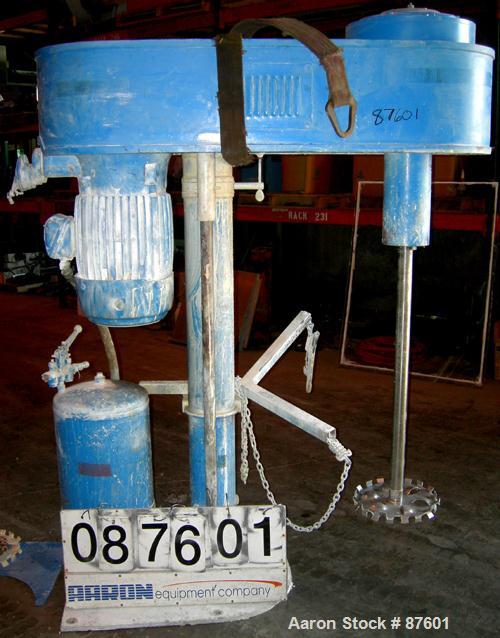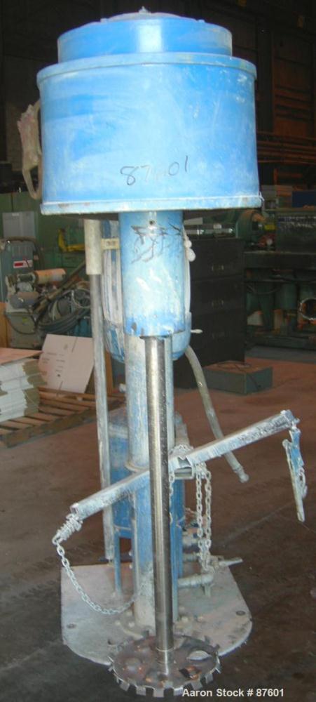 USED: Hockmeyer Disperser, 2" diameter x 38" long stainless steel shaft with a 14" diameter blade. Will center in an approximate 48" diameter can. Air/oil lift. Hand operated variable speed pulley drive. Driven by a 15 hp, 3/60/220/440 volt, 2800 rpm XP motor. Base mounted.