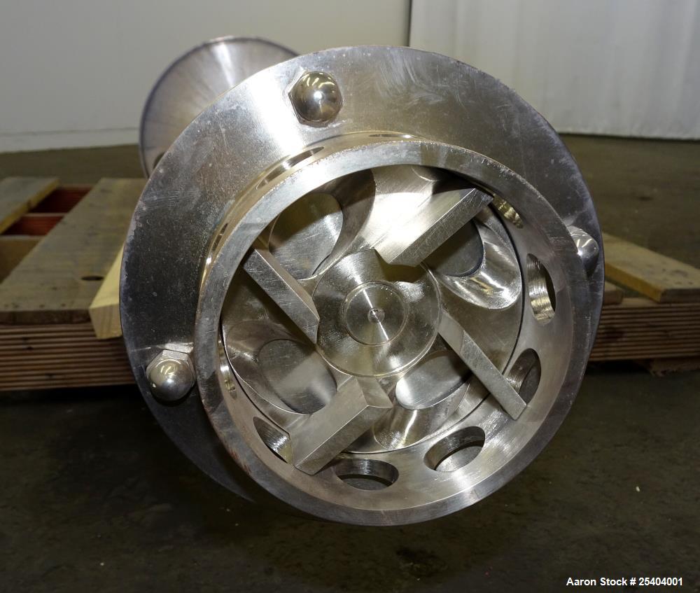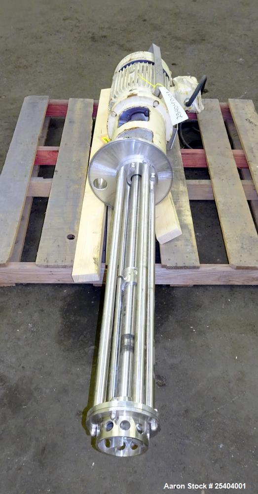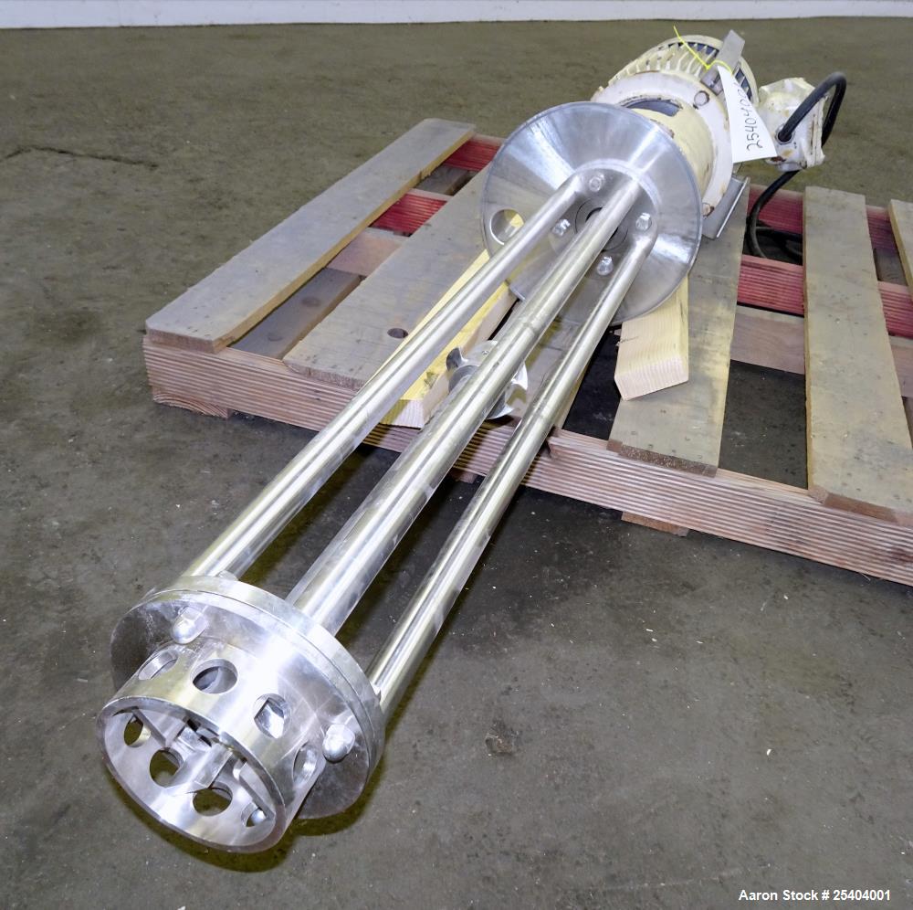 Used Ross Batch Mixer Emulsifier, Model ME-510, Stainless Steel. Capacities 25 to 250 gallons. Approximate rotor diameter 4", lower flange diameter 5-1/4", shaft length 42", mounting flange diameter 6". Driven by a 10 hp, 3/60/230/460 volt, 3485 rpm XP motor. Serial# 70270.