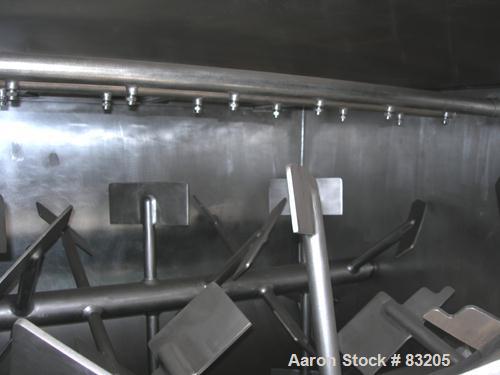 Unused-UNUSED: Phlauer premium twin shaft fluidized zone mixer, model AJSP426DDIS. 90 cubic feet working capacity, 304 stainless steel. Non-jacketed trough 72" x 84" x approx 48" deep. (2) 4-1/2" diameter shafts, each with (16) paddles welded to 1-3/4" diameter posts. Each shaft driven by a 20 hp, 3/60/332/575 volt, 1765 rpm gearmotor, ratio 68.10:1. (2) Bottom bomb bay style bottom discharge doors. (2) Side access doors, (1) top access door. (2) Internal spray bars, (3) side choppers. Driven by a 20 hp, 3/60/575 volt, 3520 rpm motor. Unit requires a stand.