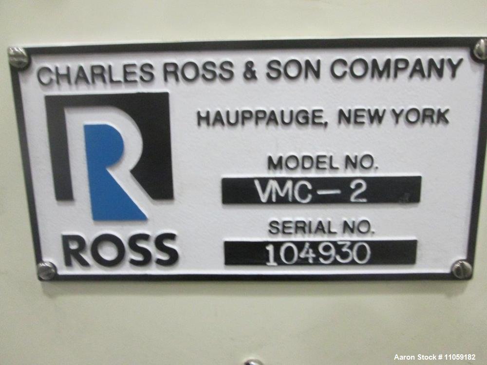 Used Ross VMC-2 Triple Shaft (tri-shaft) Versamixer Mixer. 316 stainless steel construction. Vacuum capable. 2 gallon jacketed vacuum capable mixing can with provision for thermal couple probe (Type J). 50 PSI jacket. Sanitary 80 grit finish. Explosion proof drives and controls. Anchor agitator driven by 1HP, 230/460 volt xp motor (2) high speed dispersers each driven by 1 HP, 230/460 volt motor. Air over bowl lift/lower mechanism. Lift System: 80-100psig/ 4-5 scfm. Electrical 115V/60Hz. Included are the the unit and electrical mounted on the unit. No main control panel included. High viscosity mixer.
