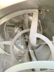 Used American Process Cylindrical Double Spiral Ribbon Blender, Model CRB-215, 304 Stainless Steel. Approximately 215 Cubic Foot Capacity. Non-jacket shell approximately 66" diameter x 150" straight side. Internal rated 50psi at -20 to 200 Degrees F. Double Spiral Ribbon, approximate 3" wide x 1/2" thick inner ribbon, 2" wide x 1" thick outer ribbon, welded on 7" wide posts, approximate 5" diameter shaft. Driven by a 40hp, 3/60/230/460 volt, 1775 rpm motor through reducer 89.45:1 ratio. Openings top: (2) 20" diameter manways with cover, (3) 8", 4", 2". Approximately 10" center bottom outlet with manual butterfly valve. Shell .375'' Thick, Heads .750'' Thick. Serial# 3657-B, Built 1992. National Board# 4252 certified by Lox Equipment Company.