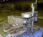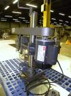 Used Kinsley Universal Roll-Tite Semi- Automatic Two Spindle Cap Tightener/ Retorquer, Model DM4350. Capable of speeds up to 200 containers per minute. Cap size range maximum 5-3/8’’ diameter without change parts. Has side belt grippers for container handling, mounts over an exsisting conveyor. Driven by a 1/2hp, 1/115-208/230 volt, 1725 rpm motor. Manual adjustments. Machine footprint 34’’ long x 30’’ wide.