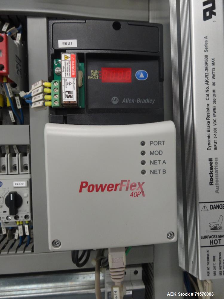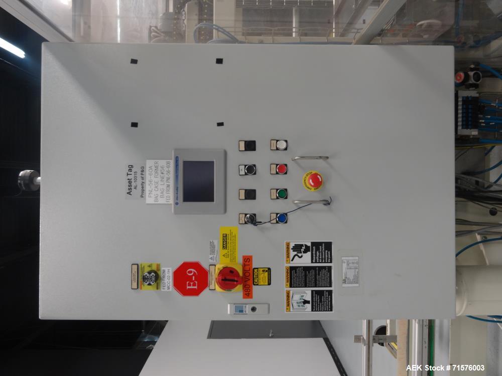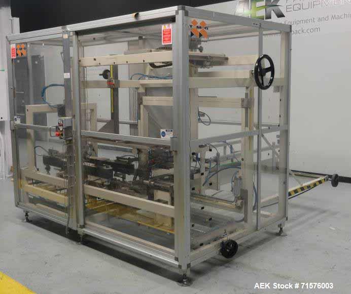 Used TMG Automated Packaging Model Formec 4 (Gen II) Vertical Case Erector. For Left Hand LH cases. Capable of up to 20 cycles/minute. Carton Dimension range of 13.58" - 29.5" long x 12.9" - 29.9" wide x 5.11" - 23.6" tall. 76" long carton infeed magazine. Uses Allen Bradley Compact Logix L32E PLC controls. Equipped with a Nordson Problue 4 Glue Unit, hot melt glue bottom seal. Mounted on adjustable height legs. 3/60/480V.