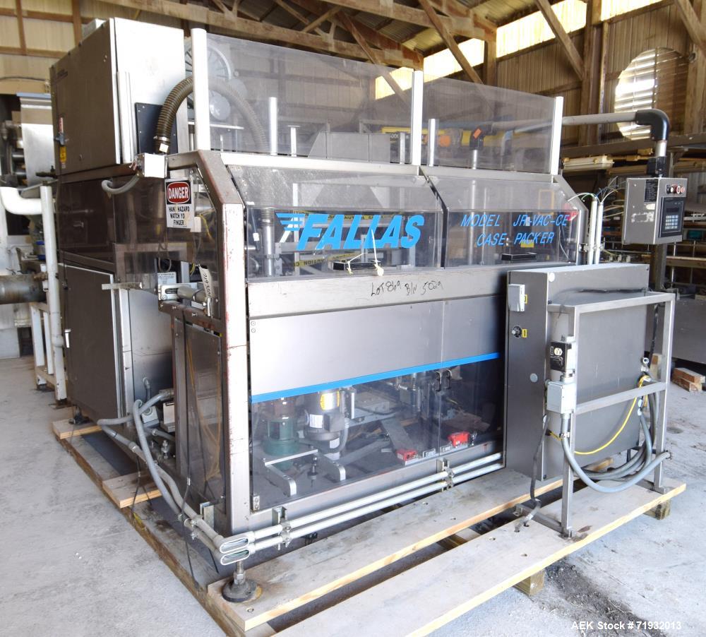Used Fallas Automation R.H. JR-VAC-CE Right Hand Automatic Case Erector & Robotic Top Loader Case Packer. Capable of speeds from 5 to 30 cycles per minute. Has a package size range: 6" - 14" (length) x 1-1/2" - 8" (width) x 1" - 3-1/2" (height). Case size range: 10" - 22" (length) x 6" -14" (width) x 4" - 11" (height). Serial# JR03089411 BRC-2.