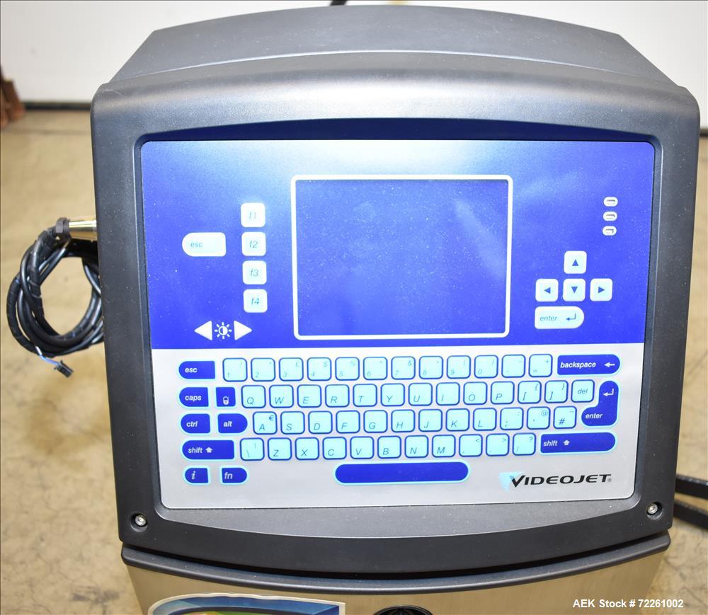Used VideoJet Model 1210 Small Character Ink Jet Printer / Coder. Can print 1 to 3 lines at speeds up to 533 ft per min. Font Matrix configuration: Single line: 5x5, 5x7, 7x9, 11x16, 17x24; twin line: 5x5, 5x7, 7x9; tri-line: 5x5, 5x7. Nominal character height: Selectable from 0.079" (2mm) to 0.279" (8.5mm), depending on the font. Serial# 18289007C102H.