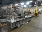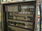 Used Holmatic Model PR1 Automatic Inline Cup Filler, Sealer and Overlidder. Capable of speeds from 10 to 40 containers per minute (depending on materials and application). Container size range: up to 5" in diameter and up to 7" in height with Fills up to 48oz. with proper change parts. Currently set up on 2-5/8" diam cups. Has Allen Bradley SLC 5/01 PLC controls. Equipped with screw cup denester, 10" long x 4" 0D piston with rotary valve, roll stock film sealing materials with die cut and heat seal station, overlidder with 36" long roller magazine and automatic eject.