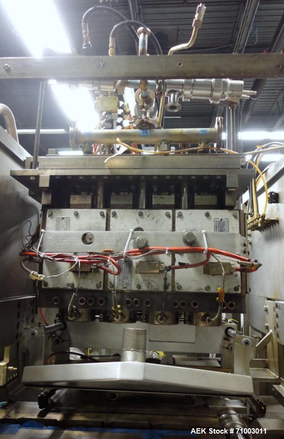 Used Rommelag Model 360M BFS Blow Fill Seal Machine. Machine is capable of speeds from 6,000 to 18,000 units per hour depending on tooling. Ampoule/vial size range 1ml to 15ml or 20 to 60 cavities, depending on tooling. Includes all pictured components, does not include molds. Last running 3ml nebulizer product. Manuals and software discs included. Serial number 360 028.