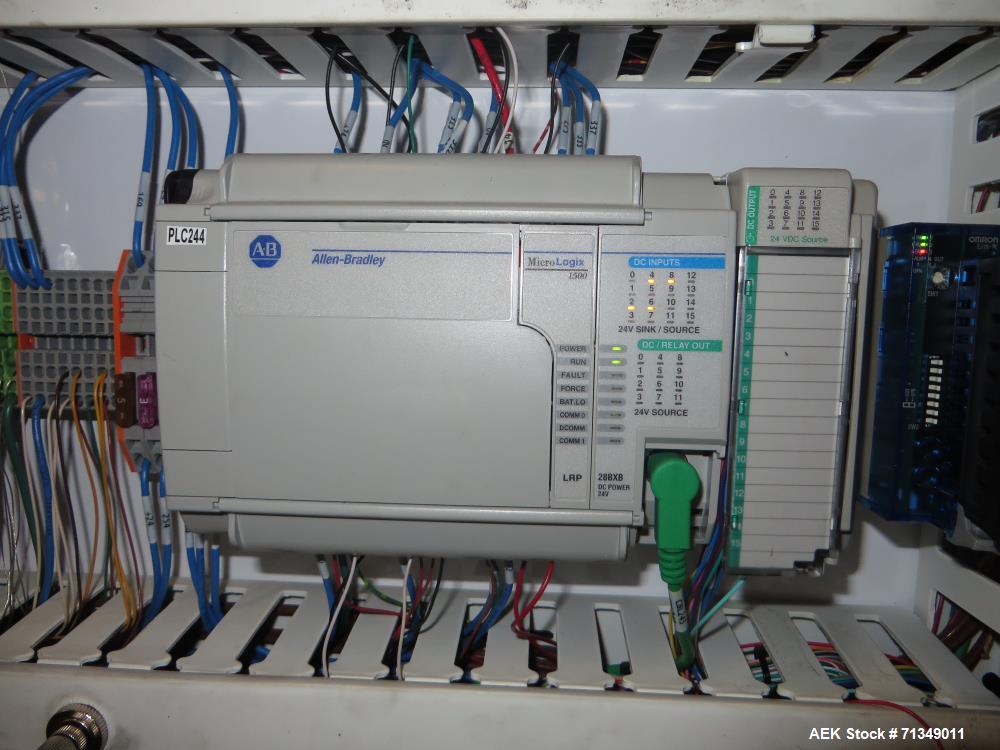 Used Matrix Packaging Model Elete DS13 Vertical form fill and seal packaging system. Complete line includes Yamato Adw-714sv scale dimpled/embossed bucket scale and Allen-Bradley Micrologix 1500 and Danaher Motion P70360-SDN controls, Has mild steel platform, bottom gusset attachment, Norwood Jaguar 53XL80 hot stamp date coder, Loma drop through metal detector, Whiz lift model CBT-2 bucket elevator, vibratory infeed product transfer conveyor, product takeawy conveyor and rotary bag accumulation conveyor. Last running sugar coated candies.