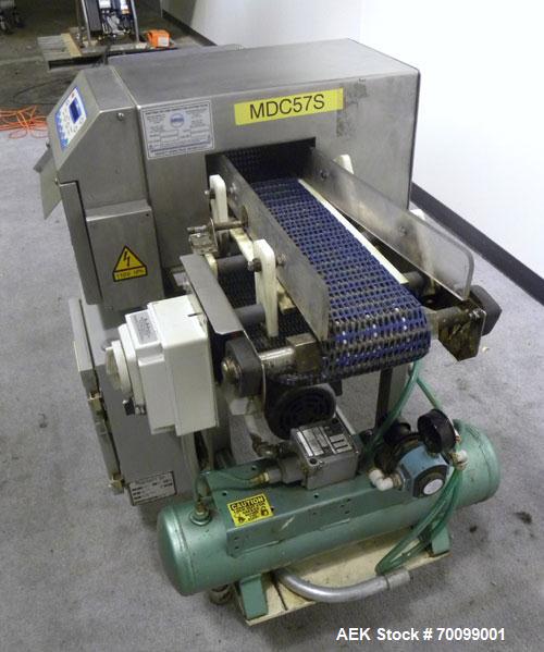 Used Loma IQ Superscan Micro Metal Detector, Stainless Steel Construction. Aperture 8" wide x 4" high. Includes a belt conveyor and air reject, approximate 33-1/2’’ discharge height. Machine footprint 50" long x 30" wide x 41" tall. 480V 3/60/110