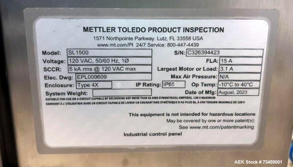 This used Mettler Toledo M31R conveyor-mounted metal detector, built in 2023, is designed for high-sensitivity product inspection in food and industrial applications. Featuring an 8" wide x 2" high usable aperture (within a 10" x 4" frame opening), this unit ensures reliable detection of ferrous, non-ferrous, and stainless contaminants in packaged goods.