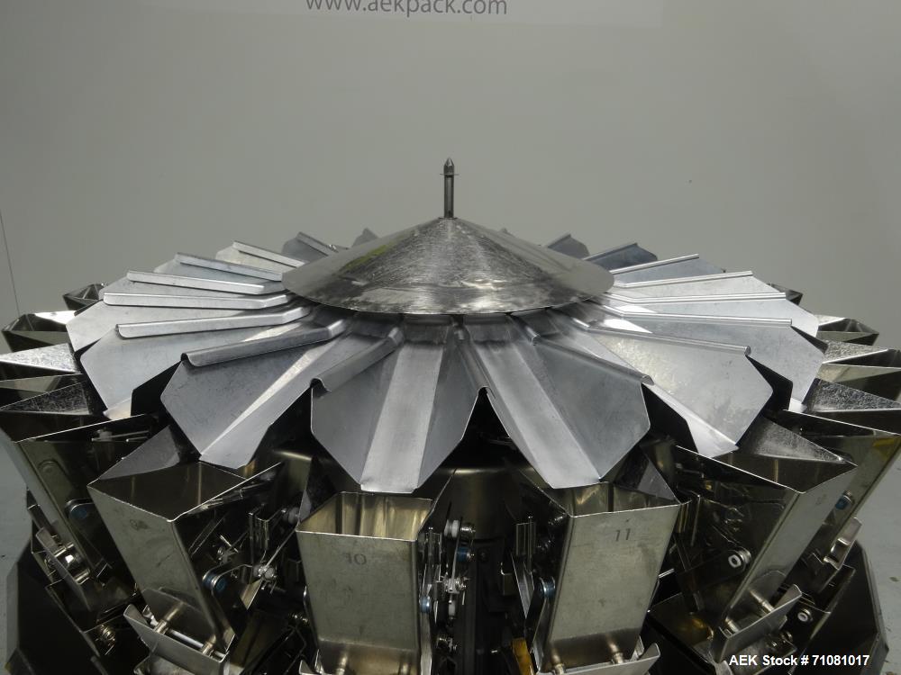 Used Ishida Model CCW-DZ-220W-D/20-WP Combination Scale with Smooth Scale Buckets. 20 head unit capable of speeds up to 180 weights per minute (depending on application). Weigh range: 14 grams - 1000 grams. Maximum volume for weighing: 3000cc per single dump. Has 2 liter buckets. Water proof design with weigh hoppers and single discharge. 208 volt, 60 hz, 10.9 amps, stainless steel contact parts. Last used in shredded cheese operation. 3/60/208V. 10.9 amps, stainless steel contact parts.