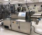 Used Pester Pack Model PEWO-Pack 450+ Overwrapper Bundler with PesterPack+Therm Shrink Tunnel. Electrically and pneumatically operated stretch bander. The system applies film to a product or group of products, hot seals them and includes automatic knife cutoff. System includes infeed/outfeed conveyors, holding unit, infeed pusher, closing bar, sealing unit, product cooling section, etc. Rated for 480V, 3/60 Hz, 75 PSI air pressure. Previously used at pharmaceutical tablet bottling facility. Set up for Polyethylene film, 50mm to 250mm maximum width, 300mm maximum reel diameter, 25 - 100mm thickness. New in 2015. Complete with HMI operator console.