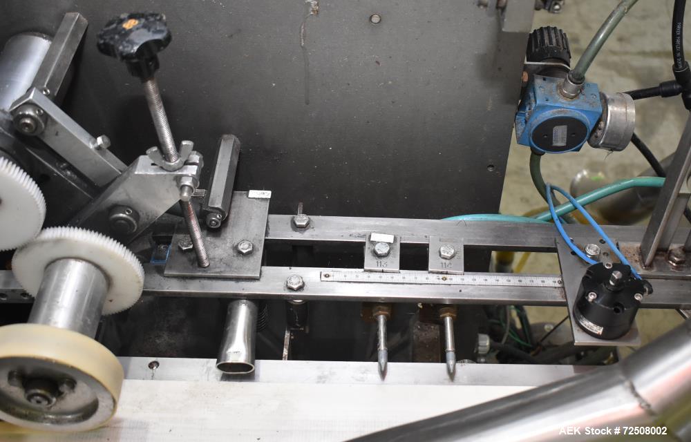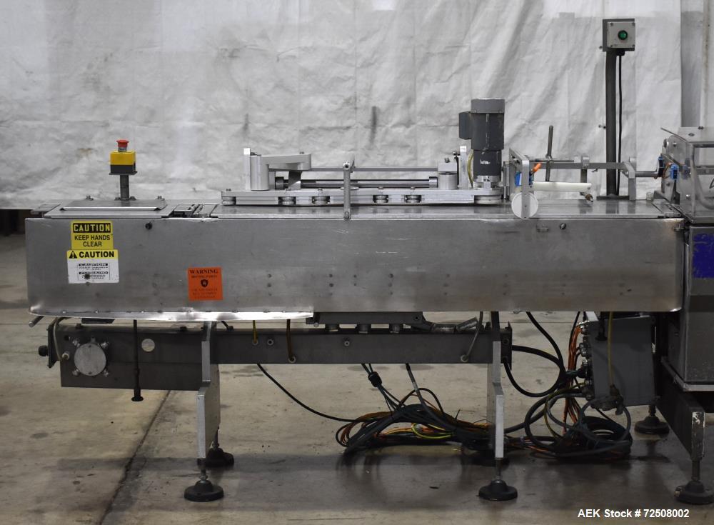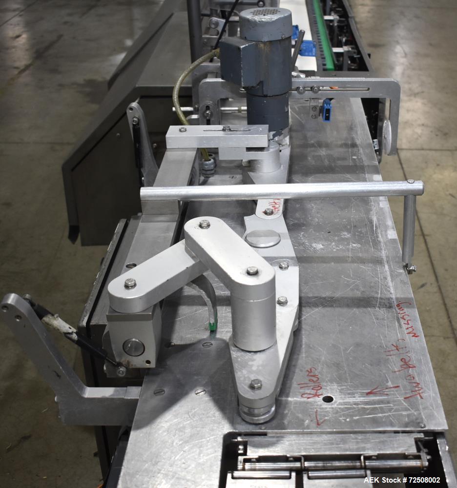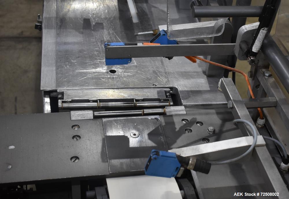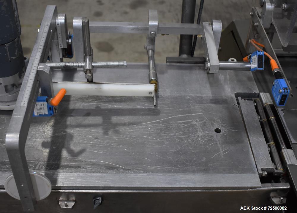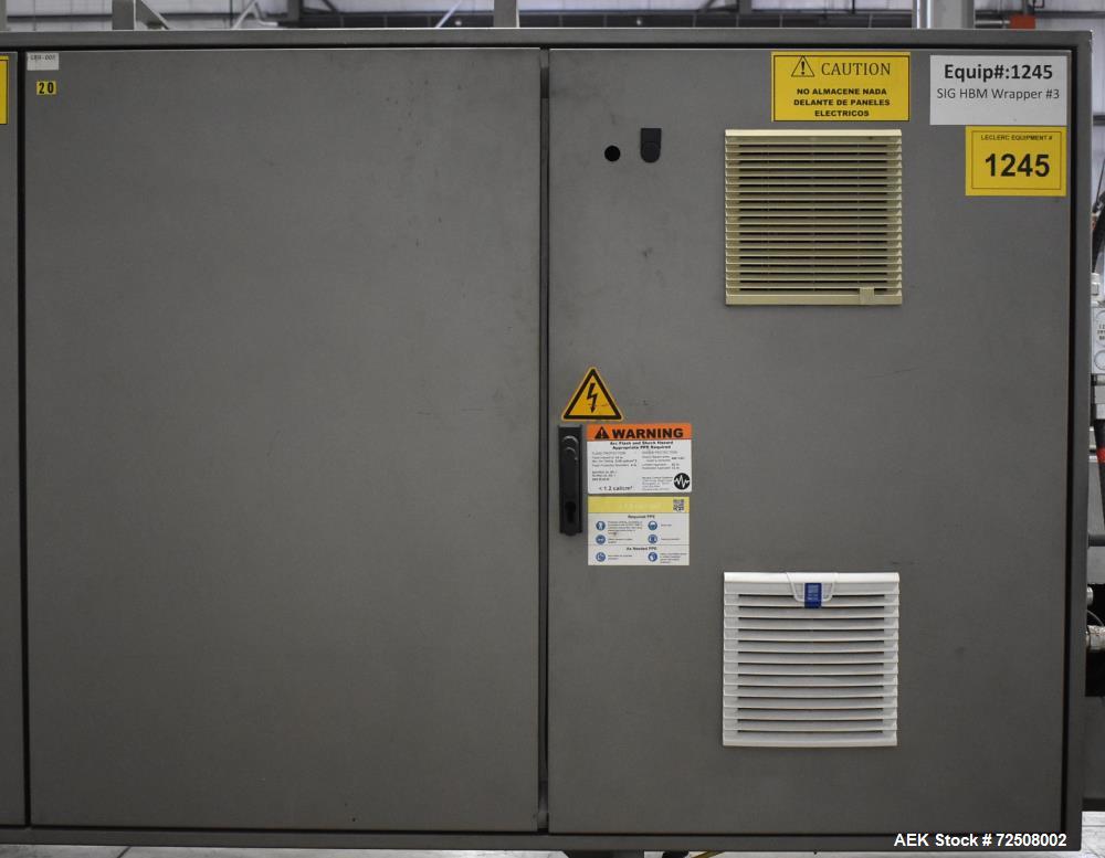 Used Sig (Syntegon/Bosch) Model HBM High Speed Horizontal Wrapper. Capable of speeds over 600 packages per minute. Size range: package cutoff length: 50 - 500mm (2-20"), product width: maximum 185mm (13.2"), product height: maximum 80mm (5.12"). Currently set up to run cold seal film. Has film registration, servo belt infeed system, dual web arbors with splice table. Last running enrobed and non enrobed granola bars. Has automatic bar orientor (turner) on infeed to line bars up into single file. Two up seal jaw configuration. Allen Bradley Kinetix 5700 drive, A/B Compact Guardlogix 5388, A/B powerflex 525, A/B Stratix 5700, A/B panelview plus HMI. Neoculus Technologies vision system. Two like systems available with servo laner for orienting bars. Ideal for protein bars, energy bars, candy bars.