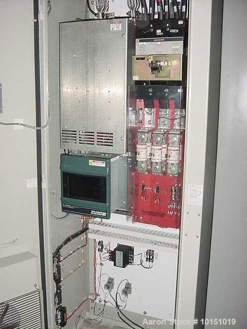 Used Berstorff Model ZE90AX31DUT Ultra Torque Co-Rotating Twin Screw Extruder having two 97mm diameter intermeshing screws with a 31:1 L/D ratio. Electrically heated, water cooled barrel consists of six sections: four (4) closed, one (1) feed (open), and one (1) vacuum vent section. Gearbox has a reduction ratio of 5.0:1 and is direct driven by a 400 hp, 1150 rpm Reliance DC motor with Rockwell Automation SCR control. Standard trough hardened construction. Manufactured 1997.