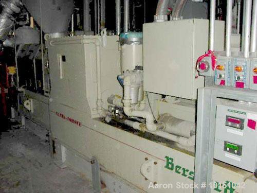 Used Berstorff Model ZE90AX31DUT Ultra Torque Co-Rotating Twin Screw Extruder having two 97mm diameter intermeshing screws with a 31:1 L/D ratio. Electrically heated, water cooled barrel consists of six sections: four (4) closed, one (1) feed (open), and one (1) vacuum vent section. Gearbox has a reduction ratio of 5.0:1 and is direct driven by a 400 hp, 1150 rpm Reliance DC motor with Rockwell Automation SCR control. Standard trough hardened construction. Manufactured 1997.