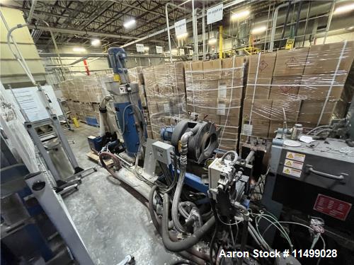 Used Davis Standard/Xaloy 3.5" Pelletizing Line, 125hp, New in 2008. 3.5" Davis Standard Thermatic Single Screw Extruder, Model 35IN35, 34:1 L/D Vented Barrel, Vent Located 78" from Feed Throat, 6 Water Cooled Barrel Zones Oversized 14" x 10" Feed Throat, Water Cooled Feed Throat, Screw Cooling 257 HP Capacity with 1.25 Service Factor, 17.39 Gearbox Ratio, Gearbox 125 hp Baldor AC Inverter Duty Motor, 1790 RPM 3.5" Xaloy Slide Plate Screen Changer, Xaloy WRP-12i Water Ring Pelletizer with Heat Exchanger, 6 Barrel Zone Temperature Controllers, 4 Die Zones Extruder & Pelletizer Speed Pods, Dynisco Pressure Gauge. Approximately 23' x 6'