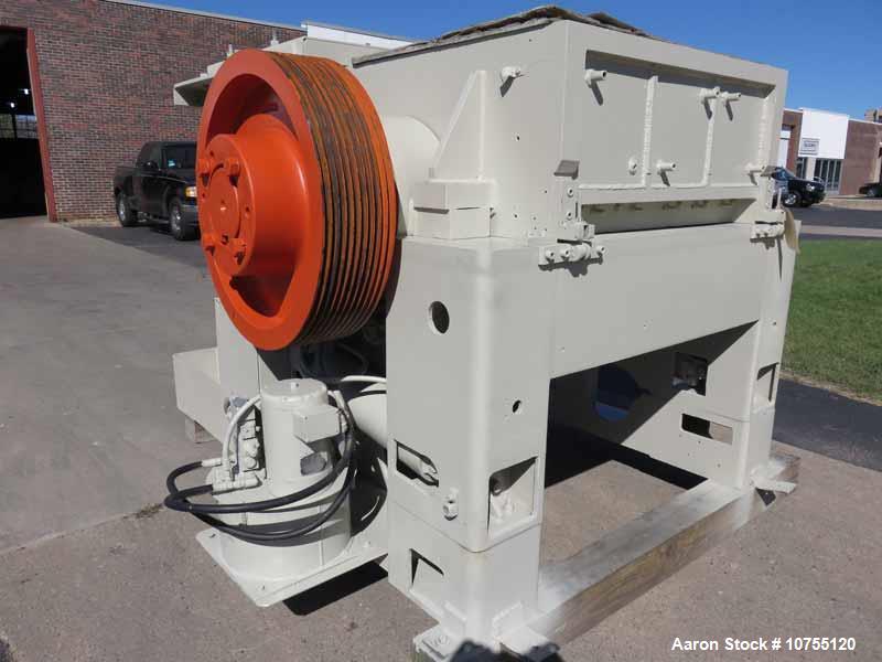 Used NELMOR MODEL G2436M1 GRANULATOR, S/N 7405-7208, 24" X 36" FEED THROAT, 5 KNIFE STAGGERED HOG ROTOR, 2 BED KNIFE, IN-FEED HOPPER, DUAL 100 HP 460 VOLT MOTORS, HYDRAULIC OPERATED SPLIT CHAMBER DESIGN, 8" AIRVEYOR DISCHARGE, MOUNTED ON BASE, STARTER AND CONTROLS NOT INCLUDED, 3/8" SCREENS INSTALLED