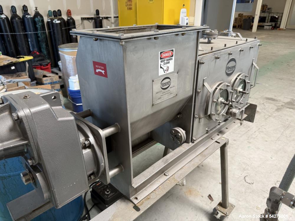 Used Vincent Corporation Compact Screw Press. Model CP-4-VT. 4" diameter screw. 1775 RPM, 1.5 HP motor. 3/60/230-460V.