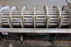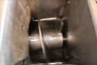 Used Heyl & Patterson Renneburg Horizontal Screw Press, 304 Stainless Steel. Approximate capacity 800 to 1000 pounds per hour, moisture content in cake depending on product 75% to 85%. Approximate 12" diameter x 72" long screw. 1st Screen section approximate 16" long with approximate 1/8" diameter screen holes, 2nd section approximate 56" long with 1/16" diameter screen holes. 12" x 8" End top feed, air operated screw horizontal mover, end bottom discharge pan. Driven by a 20hp, 3/60/460 volt 1175 rpm XP motor. Mounted on a carbon steel frame. Serial # RO-6176, built 1995. Includes a holding tank with pumps, spare screw, screen segments, and end plate.