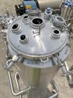 Used Baumgartner & Co / Zimmerlin Reactor, 186 Liter (49 Gallon), 316L Stainless Steel, Vertical. 17.32" diameter x 32.79" straight side. Slight dished clamp-on top, slight dished bottom. Internal Rated 45 psi / FV at 35 to 350 degrees F. 316L Stainless steel jacket rated 150 psi / FV at 35 to 350 degrees F. Bottom discharge chamber approximate 7.48" diameter x 14.89" straight side. Openings Top: (4) 1-1/2", (3) 3", 2". 2" Side bottom outlet, 2" center bottom outlet. Provision for bottom entering agitator. Mounted on (3) legs with casters, Serial # 761, National Board # 189, ASME Code 2211-1. Built 2006.
